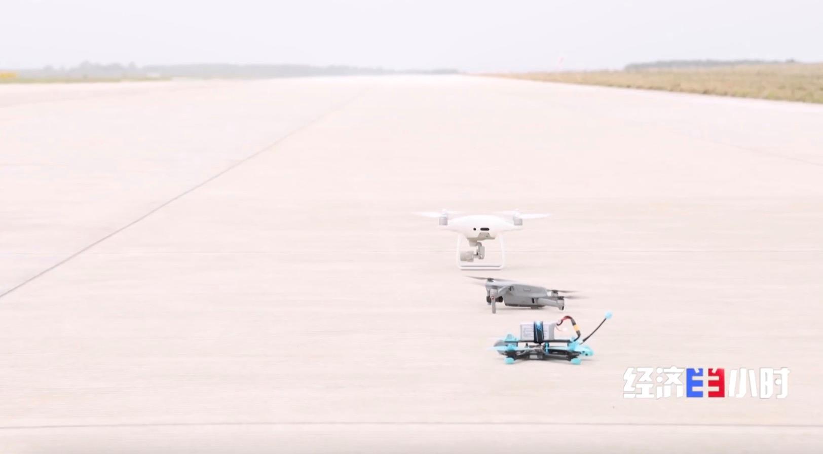 在一处通用航空机场,记者尝试了一次特殊的模拟演练,手持一把便携式的无人机干扰枪,扣动扳机,就能切断小型无人机的遥控、图像传输和卫星定位信号,让目标自动返航或降落。