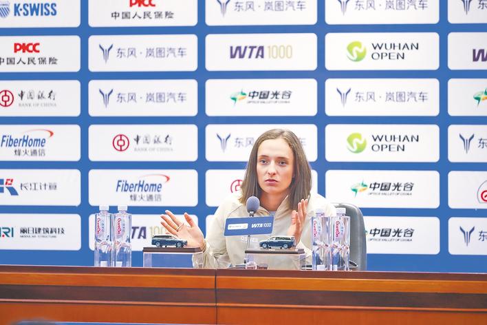10月5日,巴伦斯瓦泰克在武网媒体见面会上发言。卡和 (武网组委会供图)
