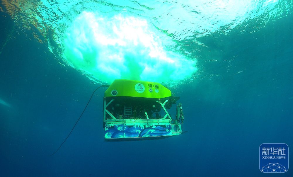 ↑9月18日,水中的“海马”号深海遥控潜水器。(陈驰 摄)