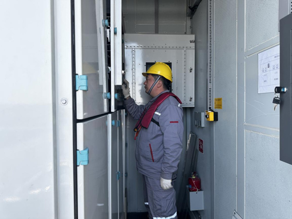 在离岸8公里的HG14项目现场,百万块光伏板整齐排列。周玉海带领3名队员,开始对箱变、汇流箱等关键设备进行逐一检查。“箱变油温57.5摄氏度,正常;油位计显示正常,无渗漏迹象。”身旁的运检员孙海洋则在巡检记录本上飞快地记录着,笔迹工整,一丝不苟。
