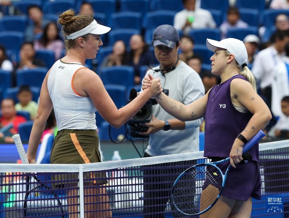 10月3日,诺斯科娃(左)和卡塔尔在赛后握手致意。