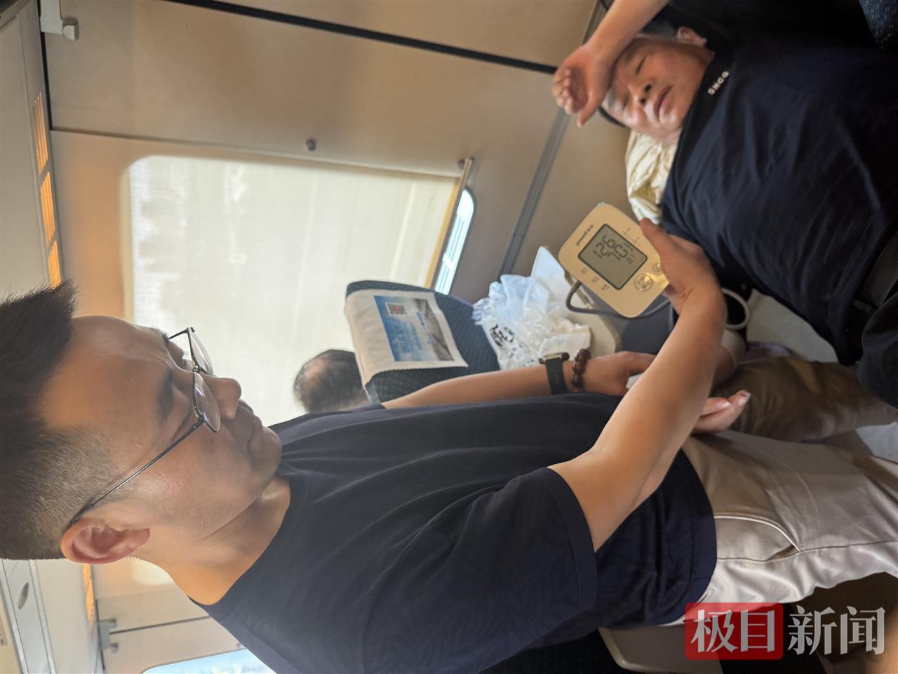 症状初步缓解后,王强的守护并未停止。回到16号车厢不到五分钟,得知老人再次不适,他立即折返,重新监测生命体征。这种持续关注体现了王强对患者高度负责的态度。